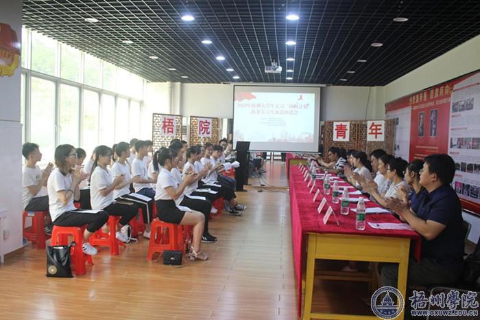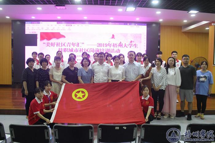 | 7月5日,由梧州市团委和我校团委联合主办的“美好社区青年汇”——2019年挂职城市社区岗前培训活动在体育馆负一楼大学生发展中心路演大厅举行,大学生实习“扬帆计划”政务实习生派遣座谈会在青马书屋举行。梧州市委组织部、梧州市团委、市自然资源局、市财政局、市司法局和我校相关部门领导参加。