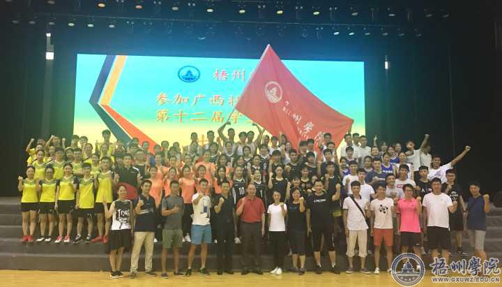 7月8日,我校在体育馆三楼举行参加广西壮族自治区第十二届学生运动会出征仪式。副校长甘金明出席活动。