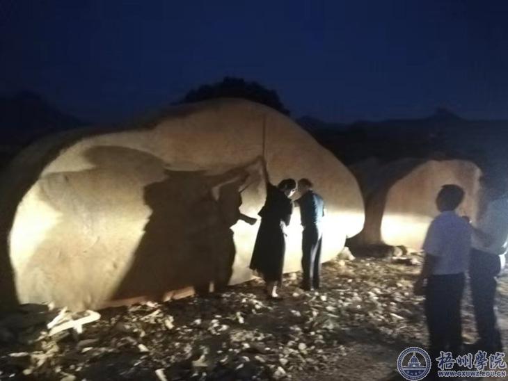 当天下午7点多,唐平秋一行在校友代表和英德当地石材开发公司负责人的陪同下,先后考察了多个“英德黄”石场,对开发商推荐的多个样石从质地、光泽、外观和体量等方面逐一进行考察,并进行比较,最后初步确定了拟购买的样石。
