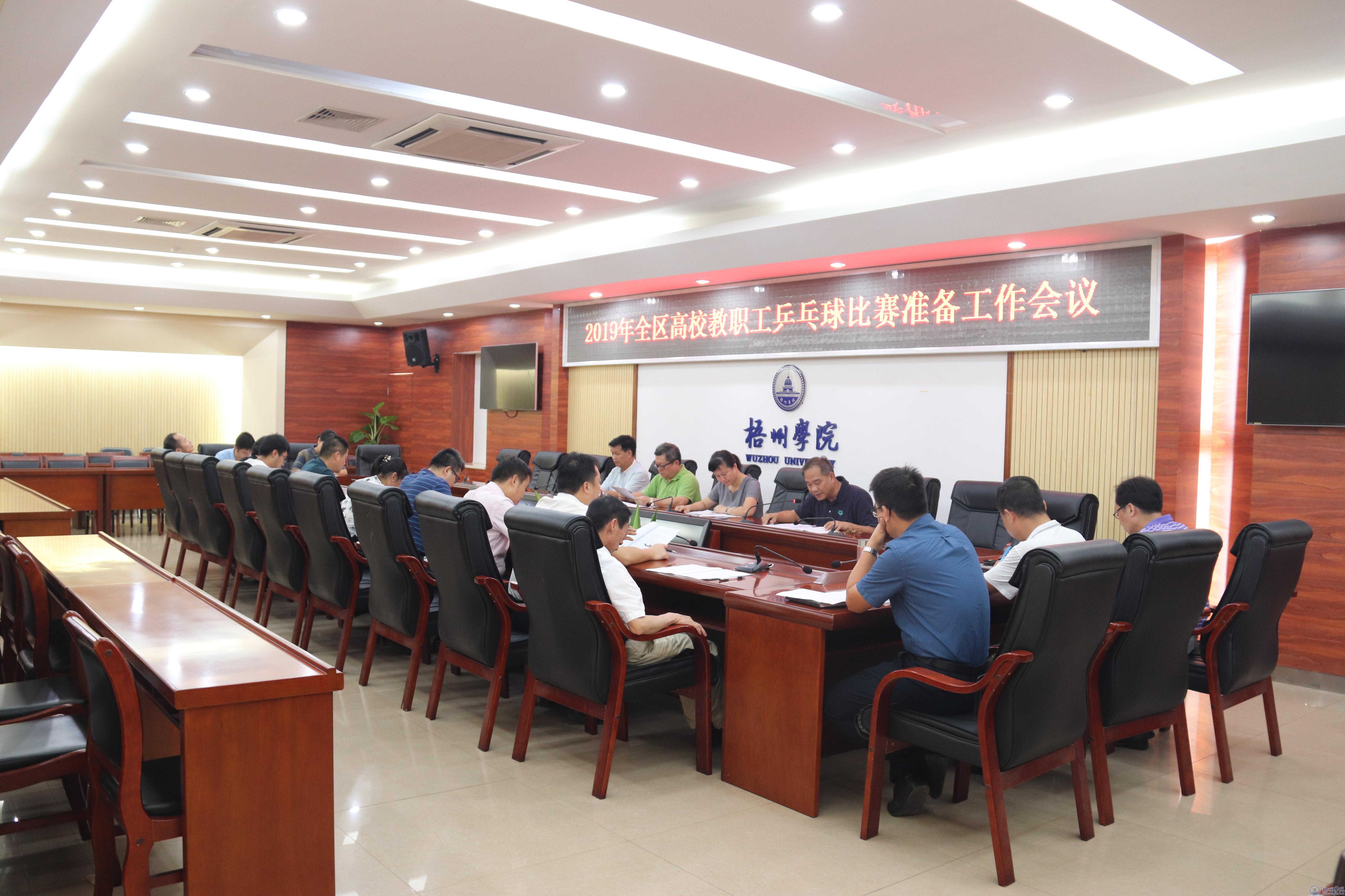由自治区教育厅主办,我校承办的2019年全区高校教职工乒乓球比赛将于10月在我校举行。为确保比赛顺利进行,9月4日下午,我校在第一会议室召开2019年全区高校教职工乒乓球比赛准备工作会议。校长杨奔、党委副书记曹迎出席会议。