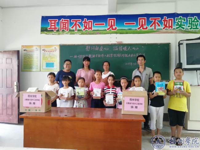 9月6日,大数据与软件工程学院党委副书记韦翠兰一行三人前往蒙山县文圩镇木护村小学开展“‘党建+扶贫’的爱心传递,知识提升”的捐书活动,并看望了学院驻村第一书记卿海军老师。