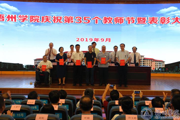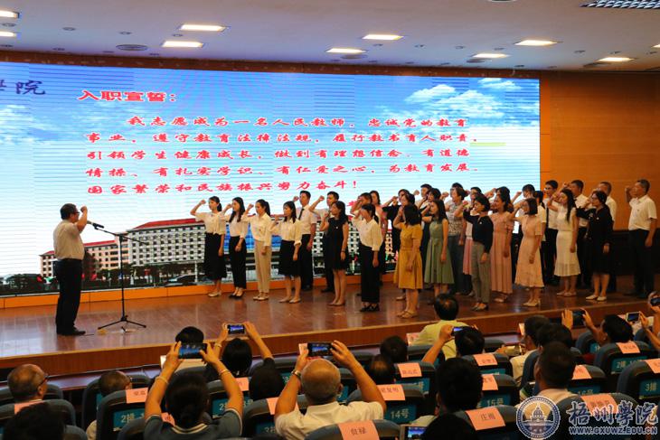 会上,杨奔校长带领新入教职工进行入职宣誓,并宣读表彰决定。大会表彰了获得2018-2019年度“自治区优秀教师”、学校2017-2018年度师德楷模、“四有”好老师荣誉称号的教师;表彰了获2017-2018年度记功嘉奖人员;表彰在第六届全区高校青年教师教学竞赛、广西本科高校哲学社会科学优秀教师特色示范课程和教育部第七期应用型课程建设大课堂活动说课比赛中获奖的教师。