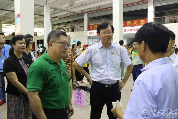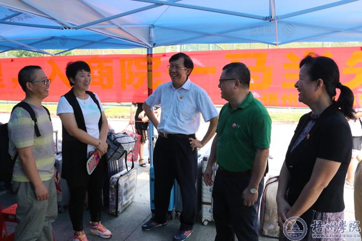 在各个二级学院迎新接待点和新生注册手续办理摊点前,学校领导询问了接待工作情况,并向参加迎新工作的人员表示慰问和感谢。