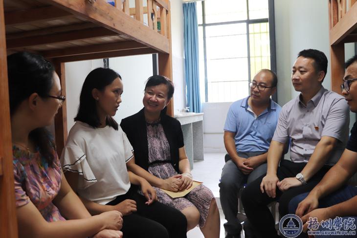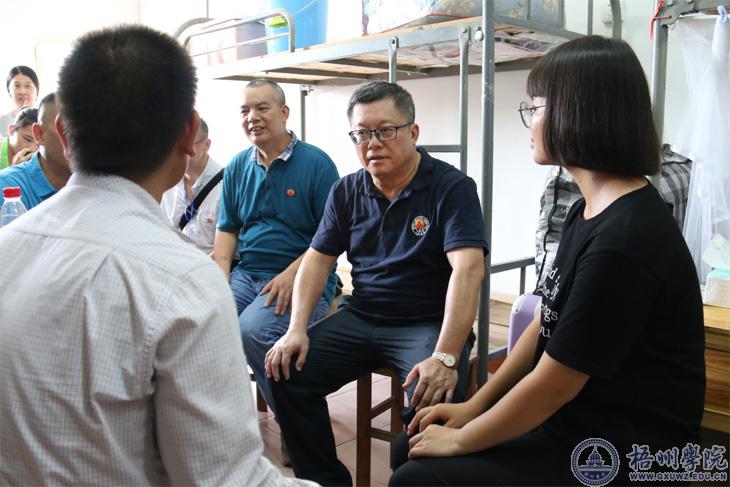 学校领导曹迎、玉振明、邱房贵、梁业华、麻新纯、甘金明分别在新生报到后,率队到新生宿舍或新生所在二级学院看望和慰问家庭经济困难新生,为他们送上学校的关怀。受到慰问的同学表示,他们真切感受到了学校的温暖与关怀,他们会以最好的姿态迎接大学生活。