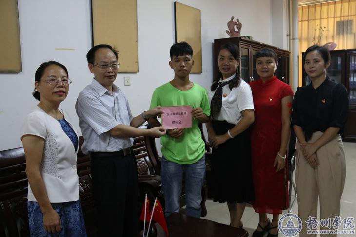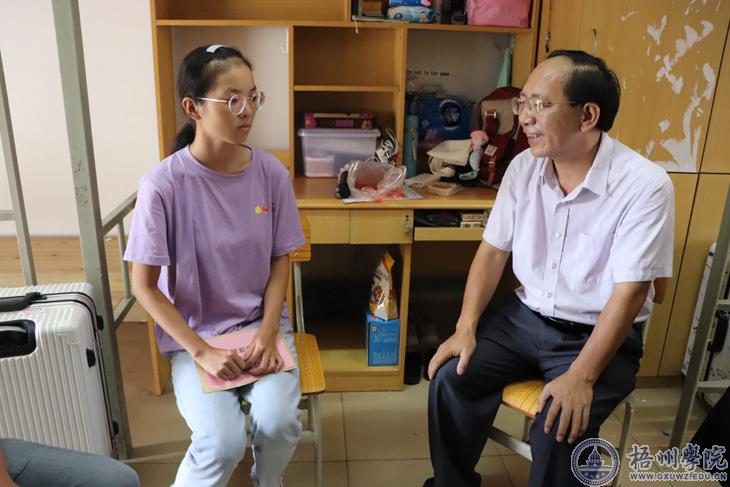 校长杨奔先后到教师教育学院校区、黄埔点开展慰问。他为来自广西博白、桂平的2019级家庭经济困难新生代表刘思远、黄超妮送上了校徽月饼和慰问金,向他们表达学校的关怀。每到一处,杨校长都仔细询问新生到校适应情况,鼓励她们克服眼前困难,珍惜时间,勤奋学习。“梧州学院是你的第二个家,有什么学习和生活上的困难就要告诉‘家人’,希望你们尽快适应新家。”刘思远的舅舅激动地说:“非常感谢学校领导的关怀,我和思远昨天就到学校了,感觉老师和同学们非常热情,学校氛围很好。”