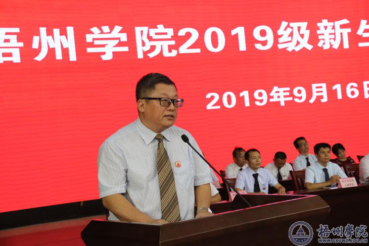 今天,4000多名2019级新同学来到了粤港澳大湾区边上的广西东大门——梧州,加入正在为升格梧州大学而奋力追梦的“梧院人”的行列。欢迎你们!我代表全校师生员工对你们的到来表示热烈的欢迎!
