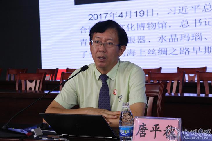 在介绍校情时,唐平秋书记说:“从大家迈进学校的那天起,我们就拥有一个共同的身份:梧院人!”他着重介绍了梧州作为广西高等教育的发源地的历史,回顾了我校近几年来发展的情况,对学校办学理念、办学特色和学校校徽校训的内涵作了深刻的阐述,并结合学校第三次党代会确定的目标,描绘了学校的发展前景。