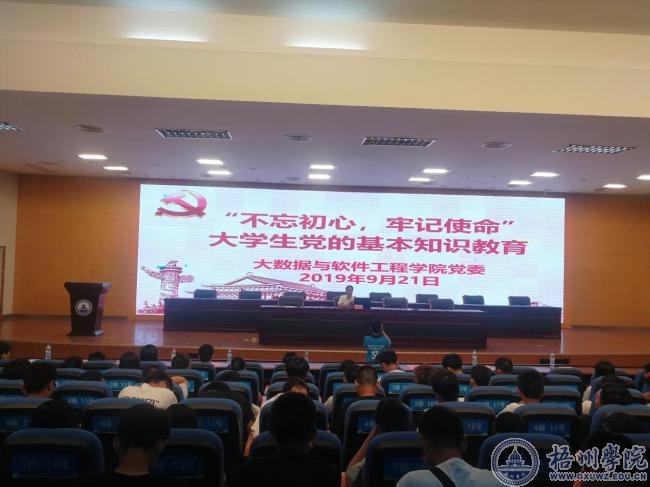 近日,大数据与软件工程学院在明理楼学术报告厅进行了“不忘初心,牢记使命”大学生党的基本知识教育活动。大数据与软件工程学院辅导员、班主任、全体2019级全体新生参加了本次活动。