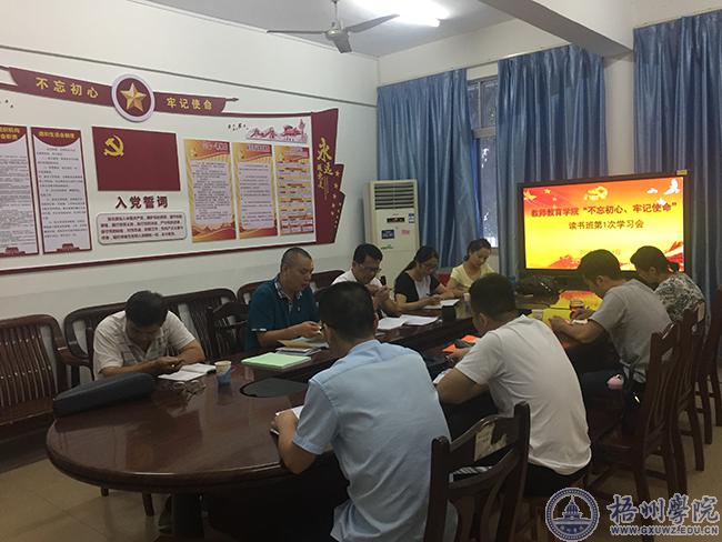 9月20日下午,教师教育学院党员领导干部“不忘初心、牢记使命”主题教育读书班第1次学习会在师范校区党员活动室举行。学院中层党员领导干部参加集体学习研讨,学院党委委员、各支部书记列席观摩学习研讨。学习会由学院党委书记梁文忠主持。