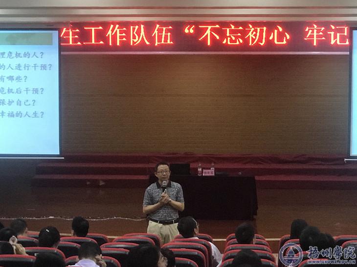 9月22日,学校在实验楼音乐厅开展了2019年学生工作队伍“不忘初心、牢记使命”主题教育培训班第三阶段的学习,全国模范教师、广西教学名师、广西大学心理研究所所长杨新国教授作题为“心理危机干预”专题讲座。