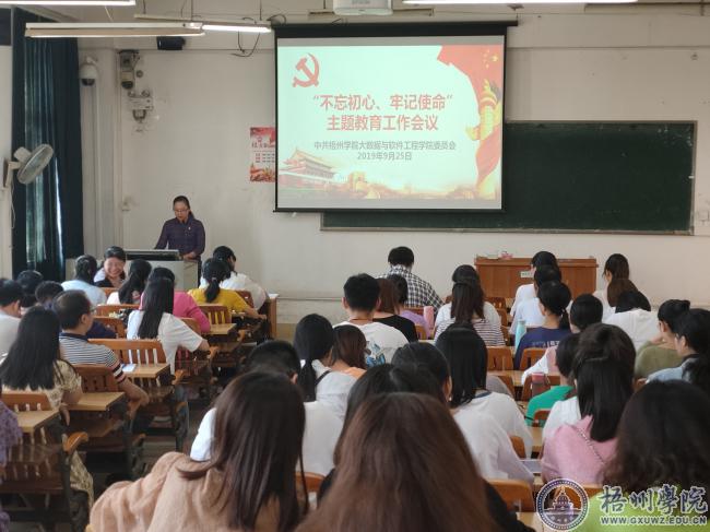 9月25日,大数据与软件工程学院党委在明理楼南楼S202教室进行“不忘初心、牢记使命”主题教育工作会议暨读书班第一次学习会。全体师生党员参加本次会议。