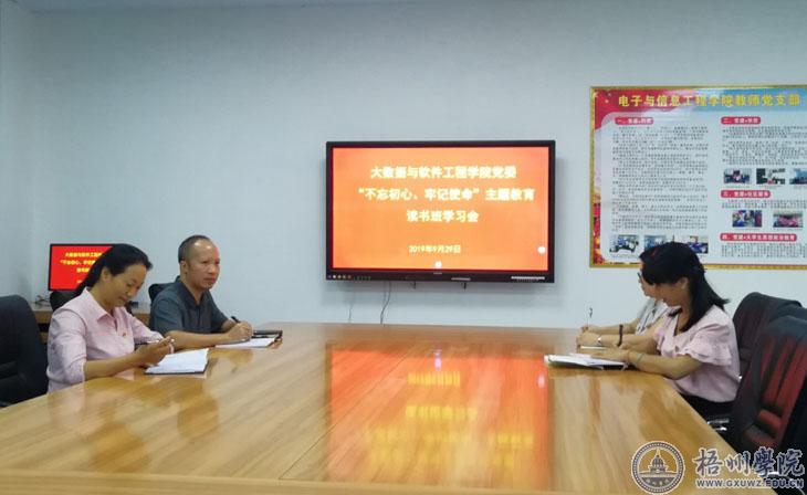 9月29日下午,大数据与软件工程学院在实验楼视频大数据处理中心开展“不忘初心、牢记使命”主题教育读书班第三次学习会。全体党委委员参加学习会。