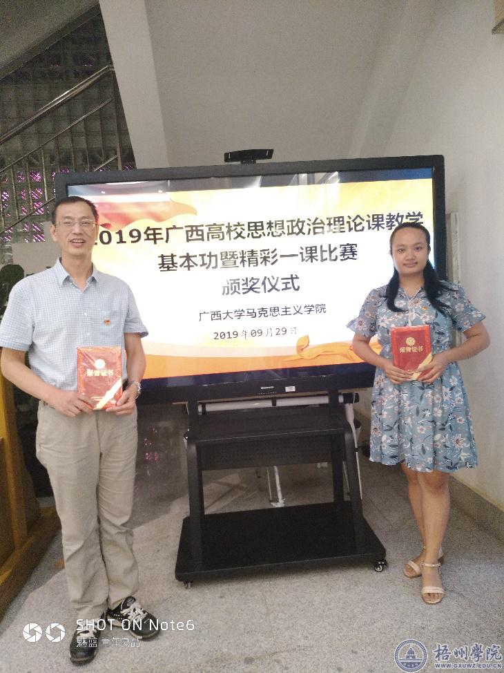 9月29日,由自治区高校工委、教育厅主办的2019年广西高校思想政治理论课教师教学基本功暨“精彩一课”决赛在广西大学马克思主义学院举行,本次比赛分为初赛、决赛两个阶段,全区本专科院校共选送169名教师参赛,分教授组和青年组两个组别进行。学校羊展文、蔡敏仪老师分别获得教授组、青年组三等奖。