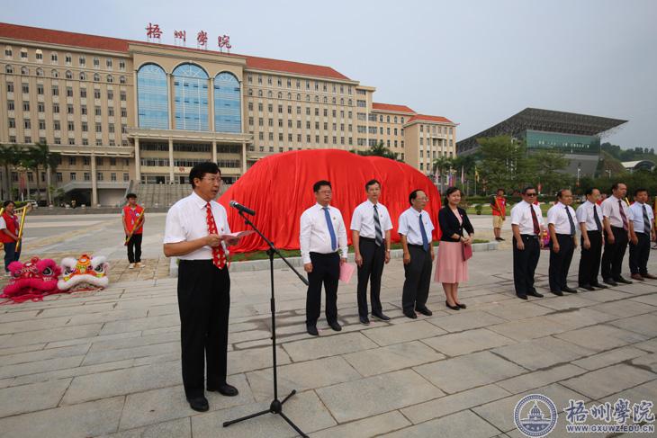 学校领导唐平秋、杨奔、曹迎、玉振明、邱房贵、梁业华、麻新纯、甘金明,02中文班毕业生、广西美斯达工程机械设备有限公司董事长黄康华等校友代表,学校各单位、部门的主要负责人,师生代表参加仪式。学校党委副书记曹迎主持仪式。