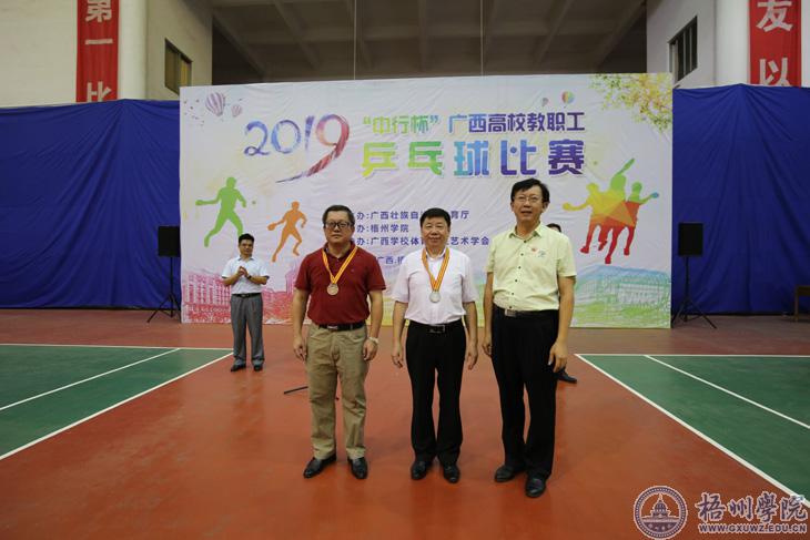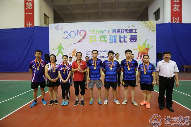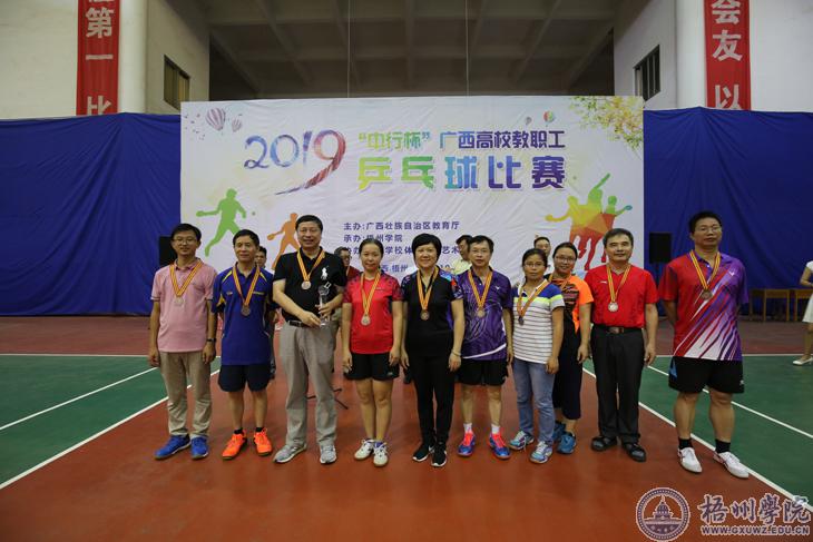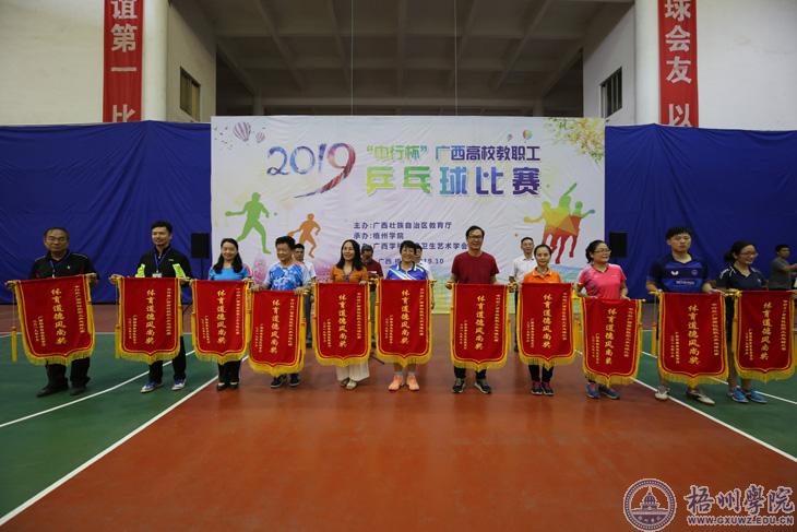10月12日下午,由广西壮族自治区教育厅主办,我校承办,广西学校体育卫生艺术学会协办的2019年“中行杯”广西高校教职工乒乓球比赛闭幕式在我校风雨球场落下帷幕。