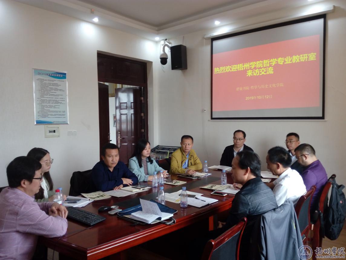 在交流会上,湘潭大学碧泉书院方介绍了湖湘学派的地方特色研究,改革开放以来的办学历史。我校马克思主义学院哲学专业教研室介绍了新办地方院校哲学专业的“守正创新育人模式”。双方还就进一步的合作支援达成了共识。