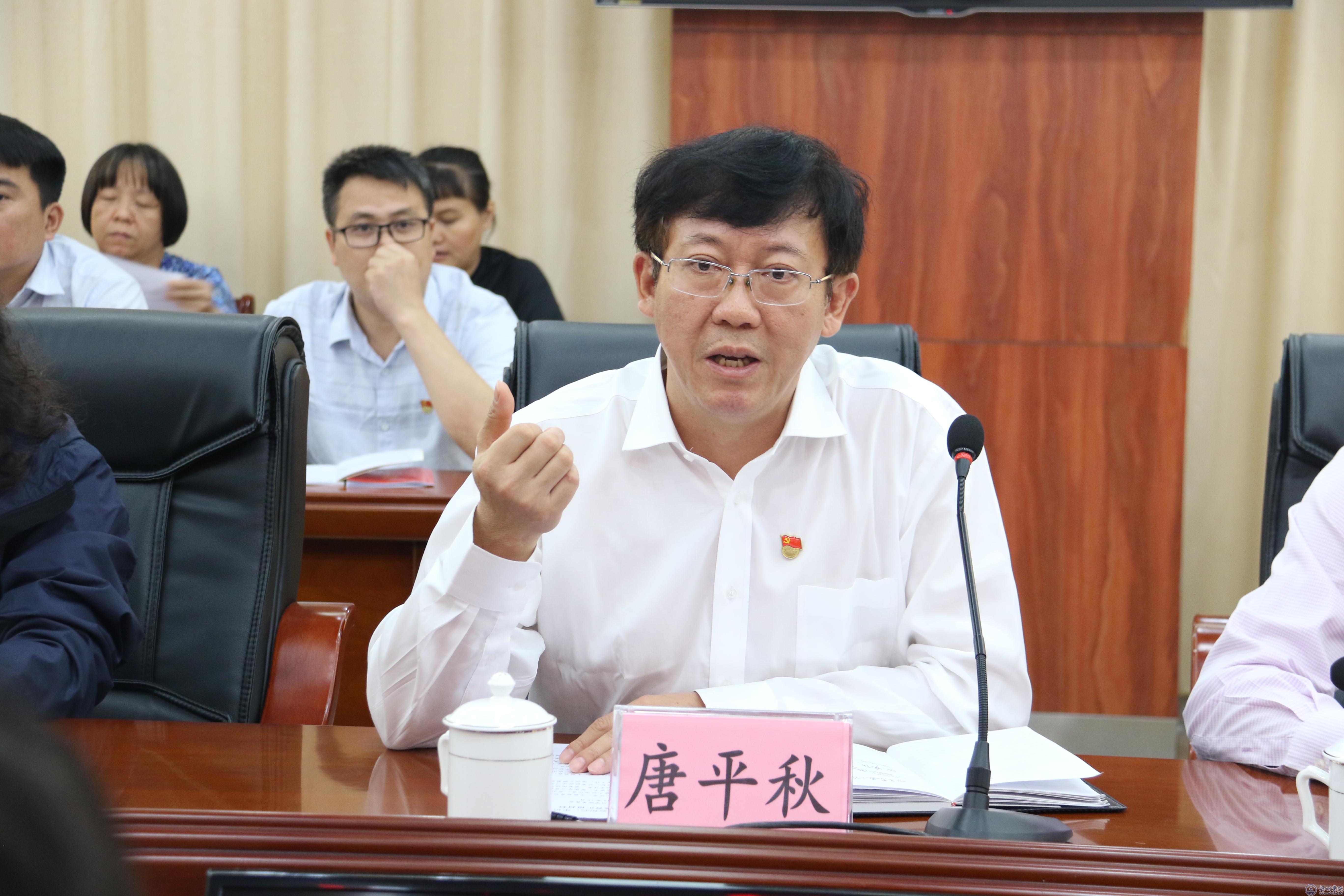 唐平秋从我校开展主题教育的亮点和特色、下一步工作打算、对中央精神的贯彻落实三个方面向指导组汇报了我校开展主题教育的情况。他介绍到,我校的亮点和特色主要体现在“坚持在检视整改上做文章、坚持在工作重点难点上做文章、坚持在本土红色资源上做文章、坚持在正确舆论引导上做文章”四个方面,尤其是在迎接本科教学审核评估工作、北校区建设、教职工限价房建设等重点难点工作中,取得了扎扎实实成效。
