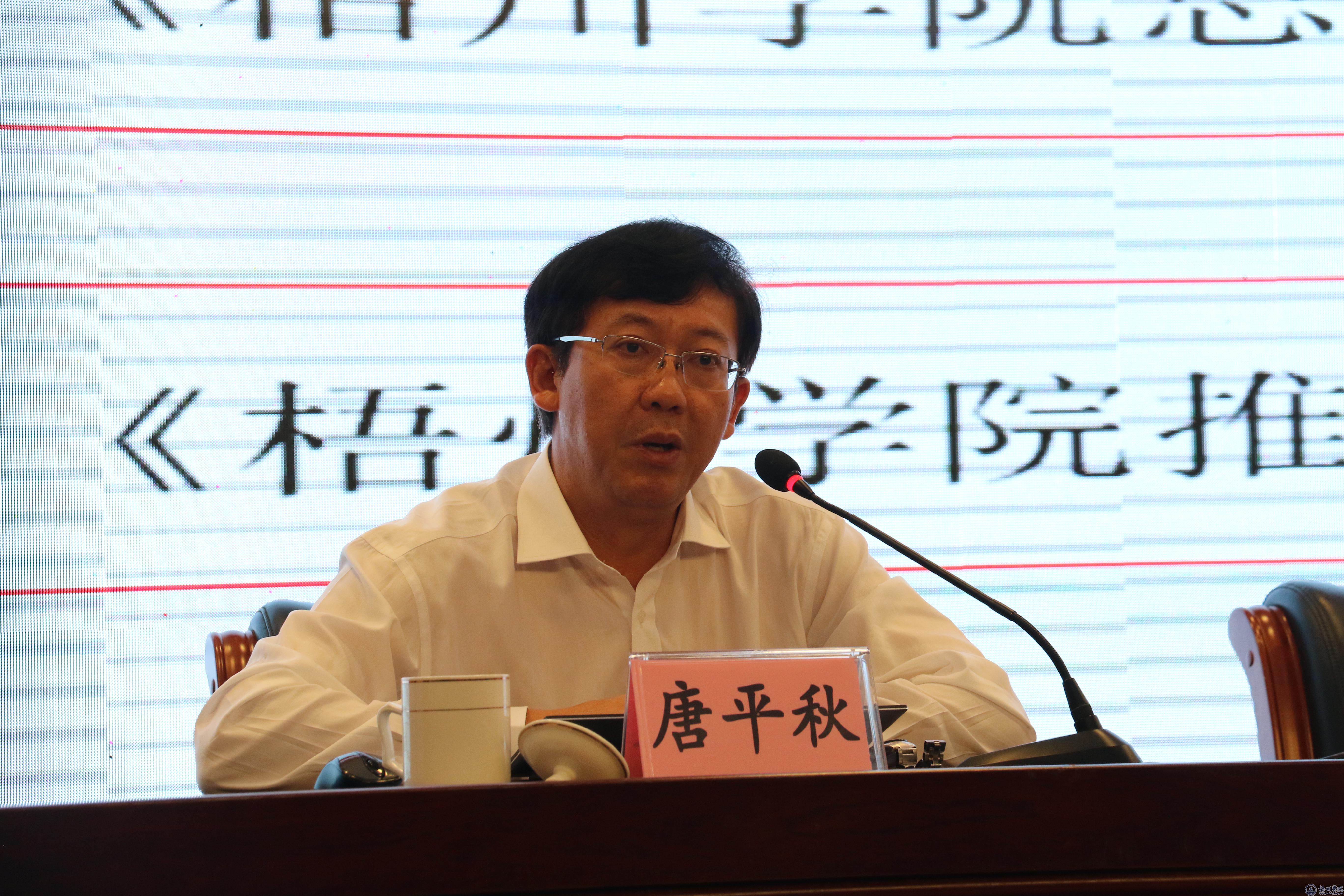 唐平秋书记指出,矢志不渝“守初心”,始终坚守立德树人根本任务,充分认识加强和改进思想政治工作的极端重要性,要坚持把立德树人作为中心环节,把思想政治工作贯穿教育教学全过程,实现全员育人、全程育人、全方位育人。他深刻分析了现阶段我校思想政治工作存在的差距和不足:“三全育人”大格局尚未真正形成,思想政治工作的针对性、实效性有待进一步加强,思政工作基础设施和工作条件相对薄弱等。他提出,要高举一面旗帜,始终坚持社会主义办学方向;围绕一个中心,加快推进学校建设和发展;聚焦两个群体,强化理想信念教育和价值引领;抓好校内“第一课堂”、实践活动“第二课堂”、网络媒体“第三课堂”三个课堂,推动思想政治工作改革创新;强化四项保障,确保思想政治工作落到实处。