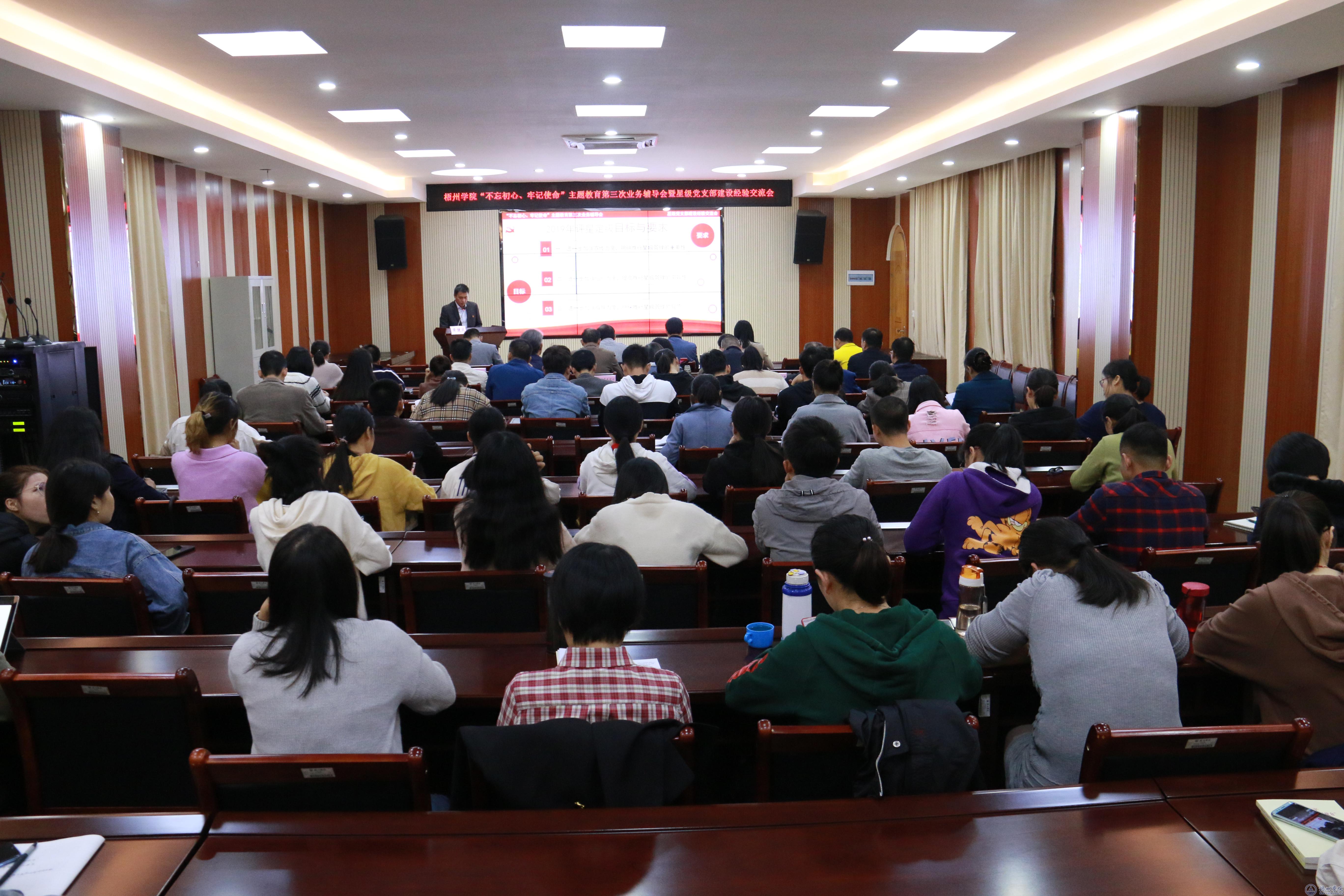 10月28日下午,学校在明理楼七楼视频会议室召开“不忘初心、牢记使命”主题教育第三次业务辅导会暨星级党支部建设经验交流会。学校党委书记唐平秋出席会议并作讲话。