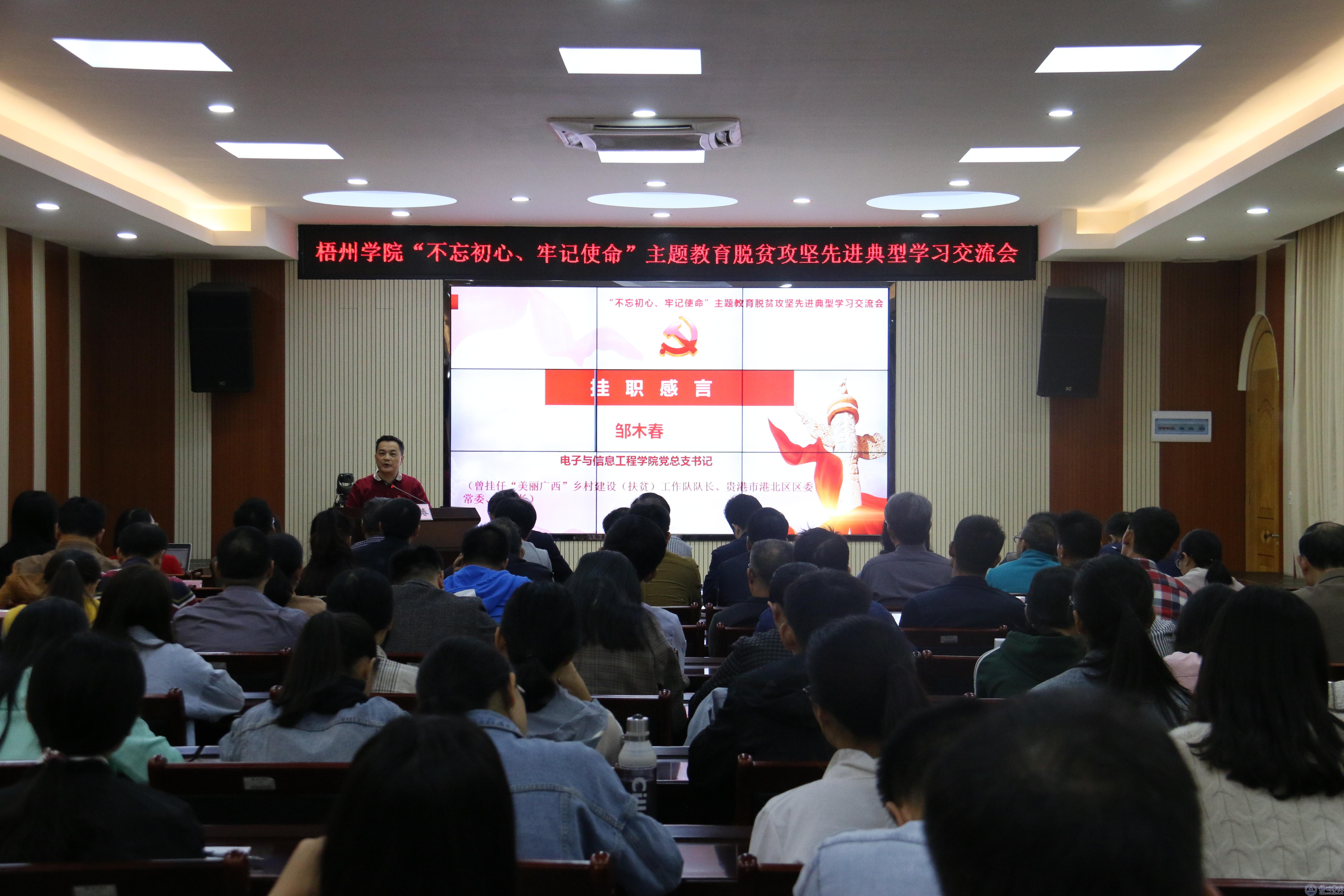 10月29日下午,学校在明理楼七楼视频会议室召开“不忘初心、牢记使命”主题教育脱贫攻坚先进典型学习交流会。学校党委书记唐平秋出席会议并作讲话。