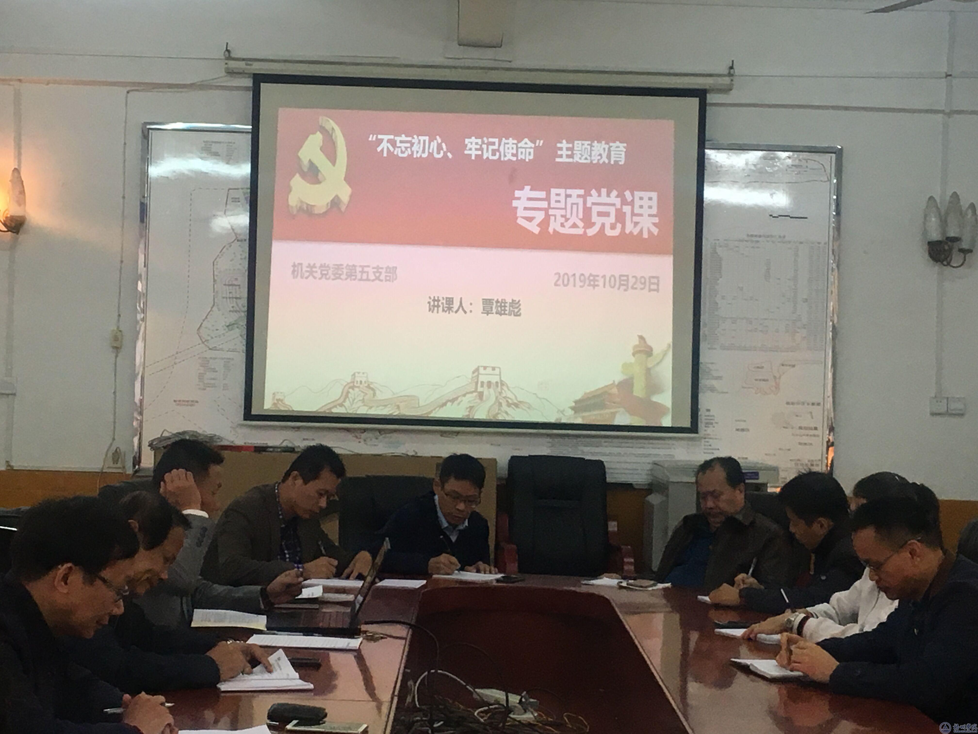 10月29日上午,机关党委第五党支部在行政楼三楼开展了“不忘初心,牢记使命”主题教育调研成果交流会暨专题党课,支部全体党员参加了交流会和专题党课。会议由支部书记覃雄彪主持。