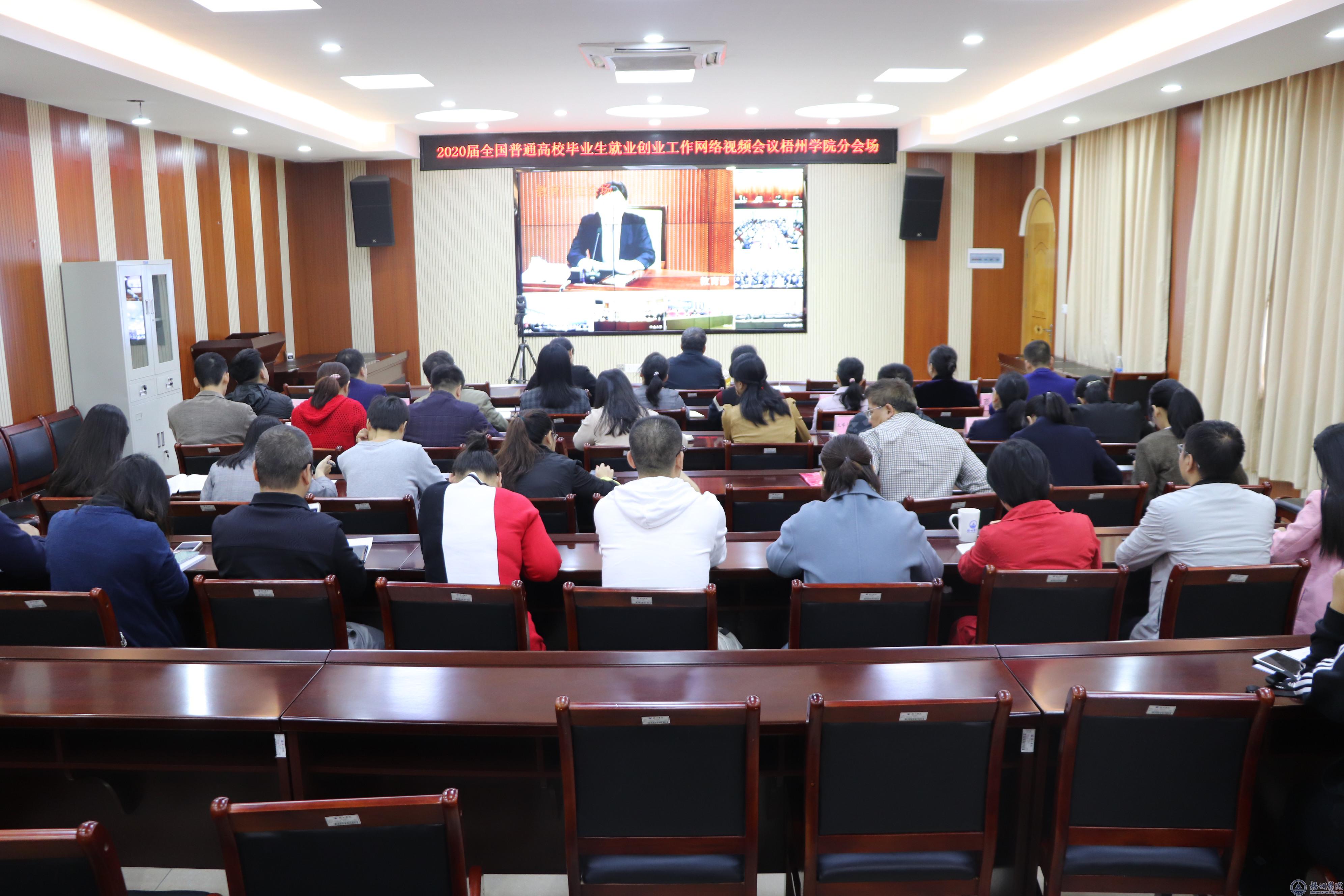 10月30日下午,教育部联合人力资源和社会保障部在北京召开2020届全国普通高校毕业生就业创业工作网络视频会议。教育部党组成员、副部长翁铁慧,人力资源和社会保障部党组成员、副部长游钧出席会议并讲话。我校在明理楼七楼视频会议室设立分会场,校长杨奔、学校党委副书记曹迎出席会议,各相关职能部门、各二级学院相关人员参加会议。