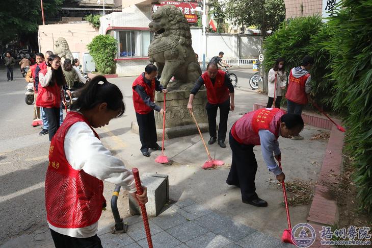 10月31日上午,学校为助力梧州市“四城联创”工作,以干净、整洁、有序的城市崭新面貌迎接第十六届梧州宝石节,结合“不忘初心、牢记使命”主题教育组织环境大整治活动。学校领导玉振明、邱房贵、梁业华、甘金明,各职能部门、各教辅单位教职工代表,各二级学院无课学生参加活动。