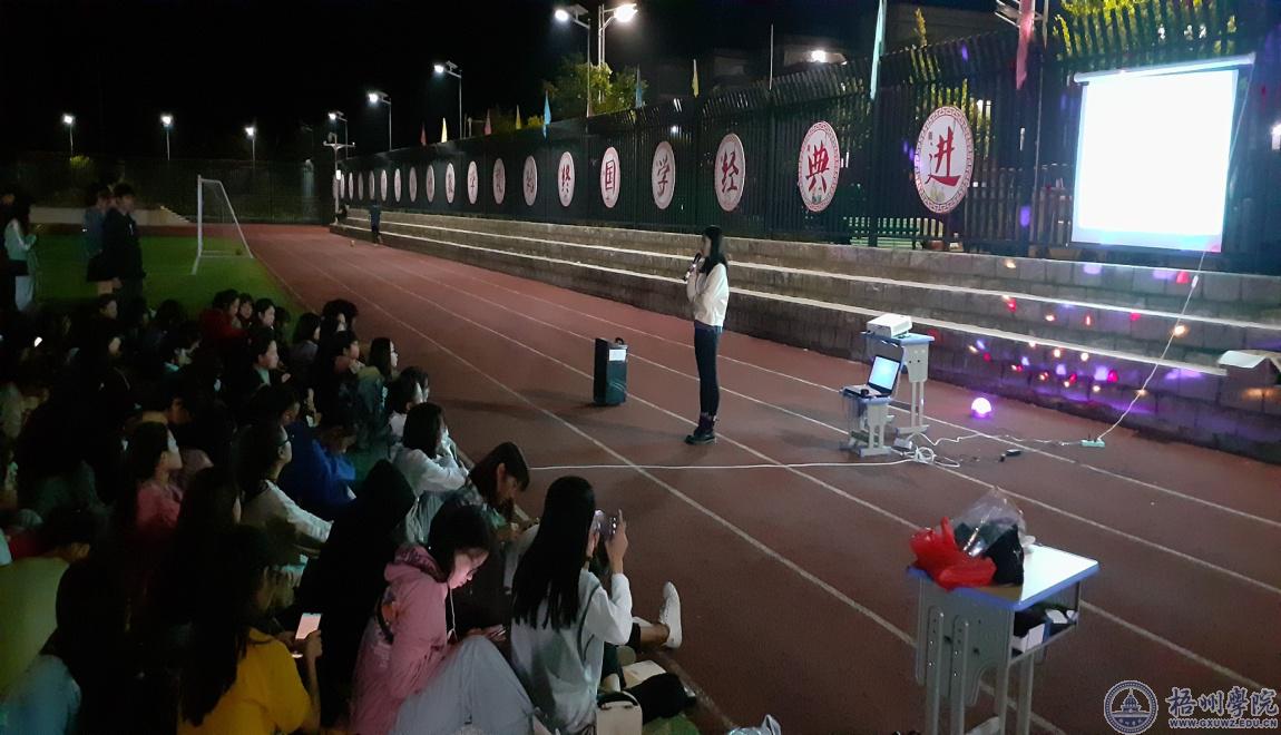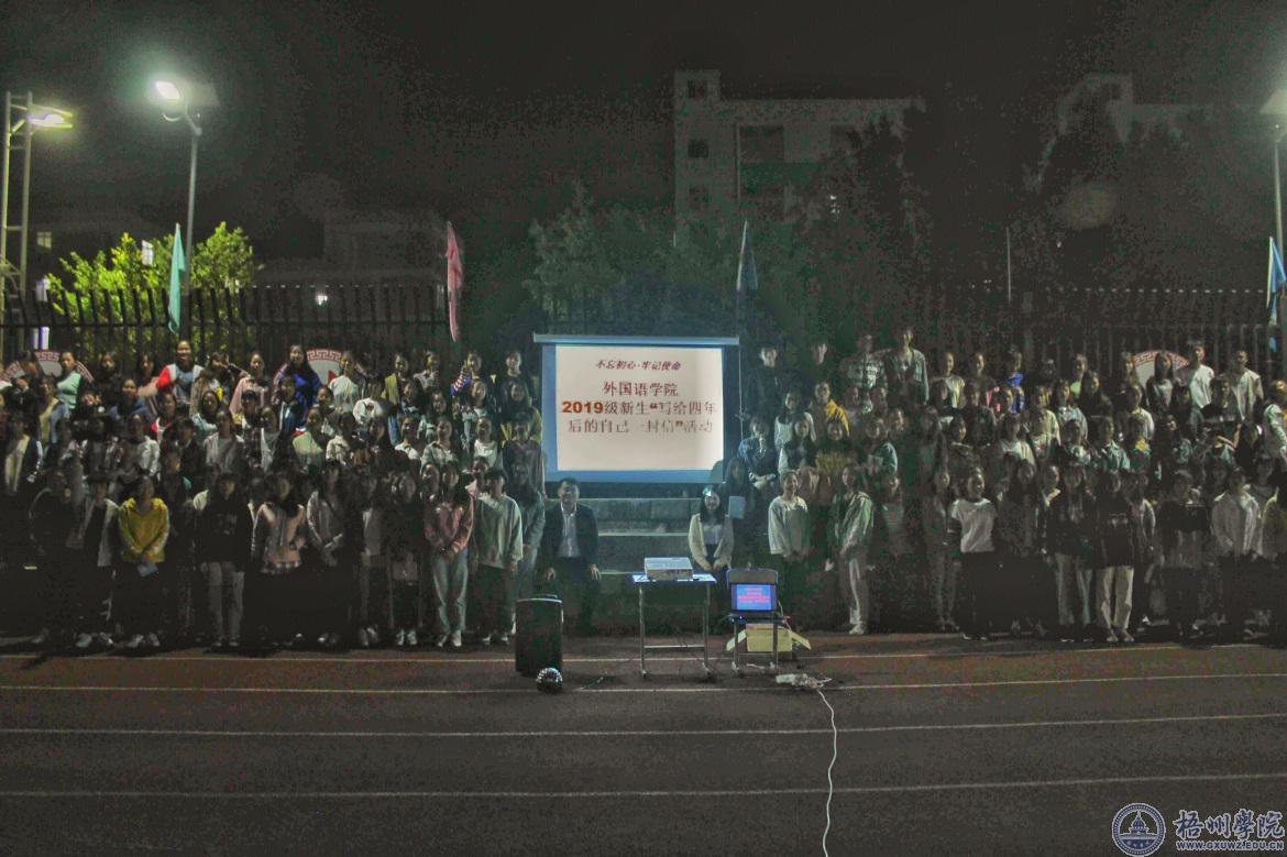 10月31日晚,外国语学院在黄埔办学点足球场举办2019级新生“写给四年后的自己一封信”活动,学院党总支副书记庄雨出席活动。2019级195名外国语学院新生参加活动。