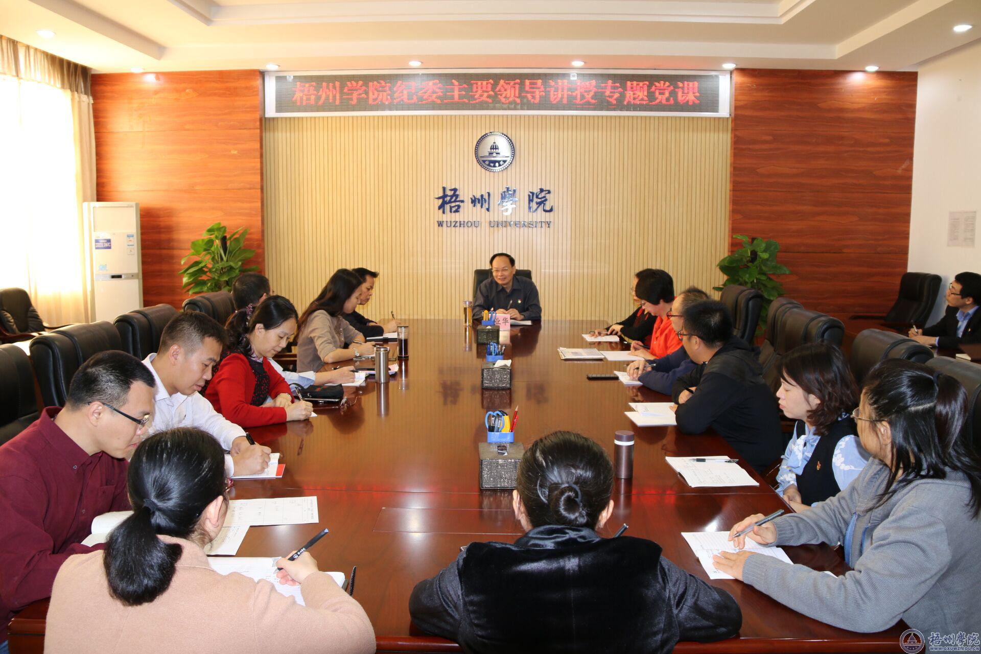 “纪检监察干部要带头加强党性修养,牢固树立正确的世界观、人生观和价值观,常修为政之德,常思贪欲之害,常怀律己之心,坚持以真理的力量和人格的力量影响人,带动人,做到办事公、克己廉、工作勤。” 10月31日下午,学校党委常委、纪委书记梁业华结合近段时间以来的理论学习、革命传统教育以及到二级党组织调研的所思所想所悟,以“提高自身素质,做好纪检监察工作”为题,给全校纪检监察干部上了一堂专题党课。