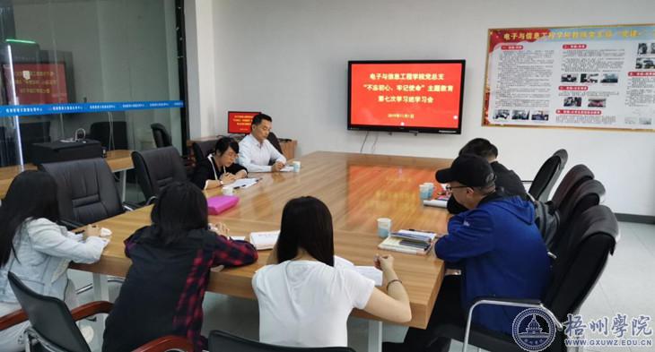 11月1日下午,电子与信息工程学院在实验楼图像处理视频室开展“不忘初心、牢记使命”主题教育第七次学习班学习会。学院领导班子、教师党员参加了学习会。