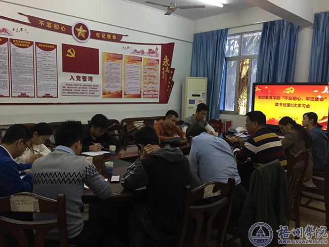 11月6日上午,教师教育学院党委召开“不忘初心、牢记使命”主题教育读书班第5次学习会。全体党委委员、纪委委员、科级以上党员干部、支部书记参加学习会。