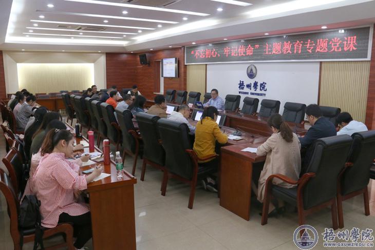 11月7日上午,杨奔校长在明理楼八楼第一会议室上了一堂以“‘不忘初心,牢记使命’,推进分配制度改革,增强学校办学活力”为题的专题党课。