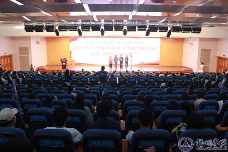 11月6日下午,由自治区妇联、自治区党委教育工委主办、梧州学院、梧州市妇联承办的“巾帼心向党 建功新时代”2019年广西优秀成功女性进高校活动在学校学术报告厅举行。自治区妇联副主席陈映红、学校党委副书记曹迎出席活动并分别致辞。来自自治区妇联、梧州市妇联的领导嘉宾和学校500多名师生参加此次活动。