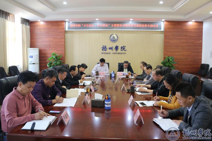 11月11日上午,学校领导班子在明理楼八楼第二会议室召开“不忘初心、牢记使命”主题教育对照党章党规找差距专题会议。学校党委书记唐平秋主持会议,学校领导杨奔、曹迎、玉振明、邱房贵、梁业华、麻新纯、甘金明出席会议,学校党委常委黄健武、陈健萍,校长助理李远林、覃雄彪列席会议。