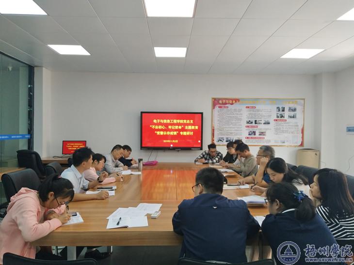 11月8日,电子与信息工程学院在图像处理视频室开展“不忘初心、牢记使命”主题教育育第八次主题教育学习会和第四次研讨会。