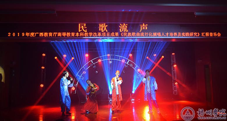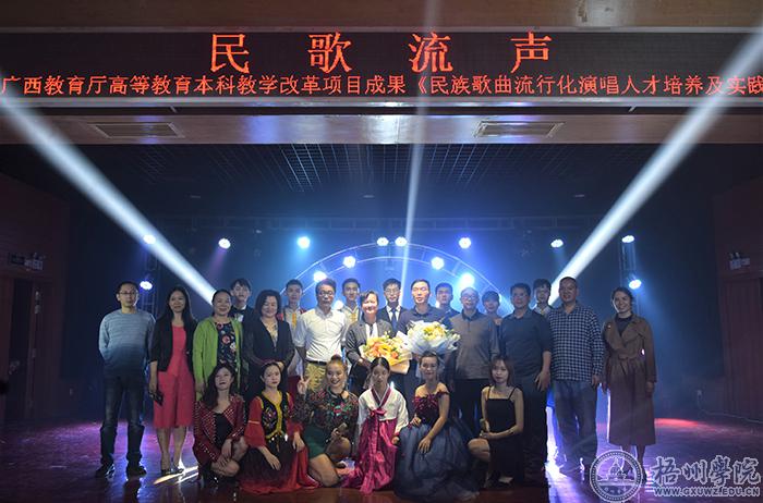 11月12日晚,教师教育学院在北区实验楼五楼音乐厅举办2019年度广西教育厅高等教育本科教学改革项目成果:民歌流声——《民族歌曲流行化表演人才培养及实践研究》汇报音乐会,学校党委副书记曹迎出席本次音乐会。