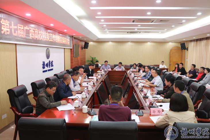11月13日上午,由广西高等教育学会校友工作研究分会主办,我校承办的第七届广西高校校友工作创新发展研讨会在明理楼七楼视频会议室召开。来自全区29所高校的50多名校友工作代表齐聚我校,共同探讨新形势下广西校友工作的创新和发展。广西高等教育学会会长、自治区教育厅院原副厅长杨伟嘉,学校校长杨奔,玉林师范学院党委副书记韦广雄,广西工商职业技术学院副院长李仕钦,广西高等教育学会校友工作研究分会常务副会长、广西大学校友工作办公室主任余云宇等出席会议开幕式。开幕式由学校副校长麻新纯主持。