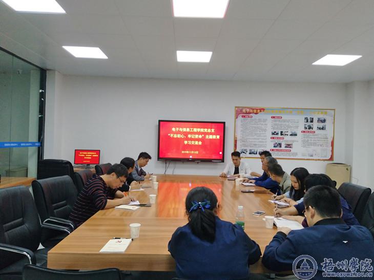 11月13日下午,电子与信息工程学院召开“不忘初心、牢记使命”第10次学习会暨教师党支部学习心得交流会。