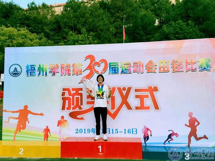 11月16日下午,大数据与软件工程学院2018级信息与计算科学专业的陆祖珍以30秒92分的成绩摘走学生组女子200米决赛冠军。