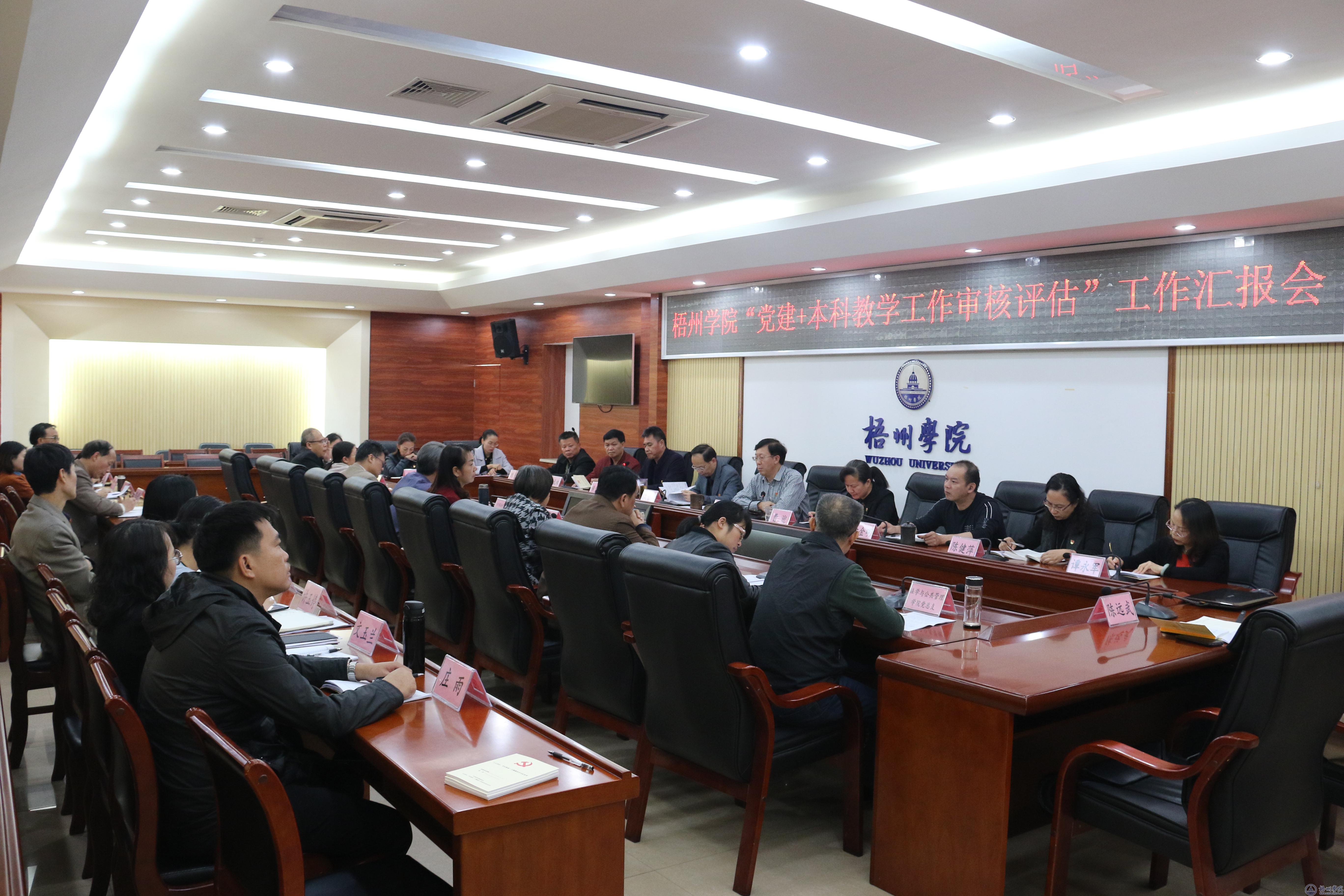 11月19日下午,我校在明理楼八楼第一会议室召开“党建+本科教学工作审核评估”工作汇报会。学校领导唐平秋、曹迎、梁业华、甘金明出席汇报会。会议由校党委副书记曹迎主持。