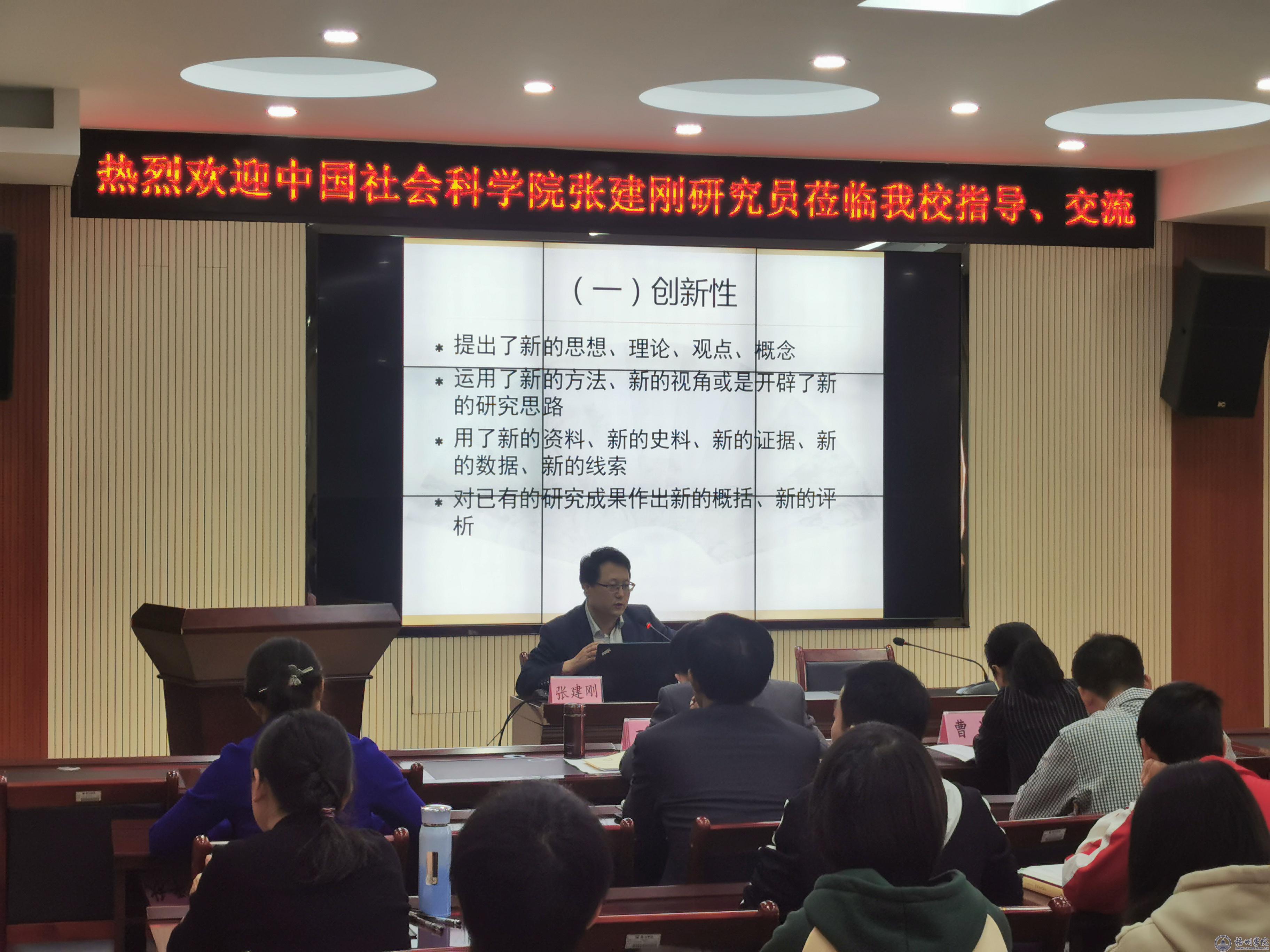 11月16日,我校马克思主义学院邀请中国社会科学院张建刚研究员作《学术论文的评价标准及其写作技巧》专题讲座。学校党委副书记曹迎参加讲座。