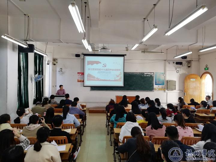11月20日,商学院结合“不忘初心、牢记使命”主题教育,深入学习贯彻落实十九届四中全会精神。