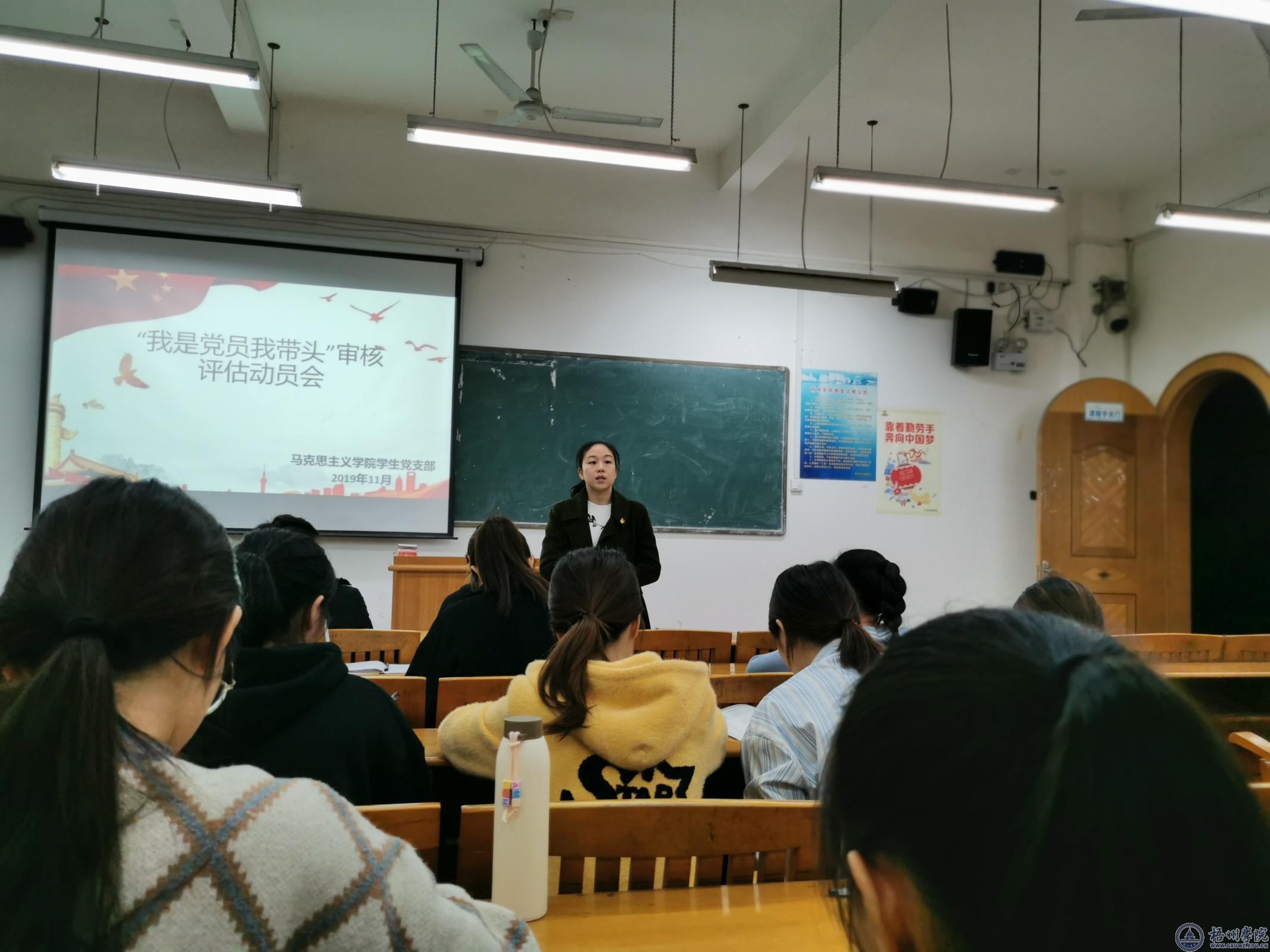 11月20日下午,马克思主义学院学生党支部在明理楼M202教室召开“我是党员我带头”审核评估动员会。