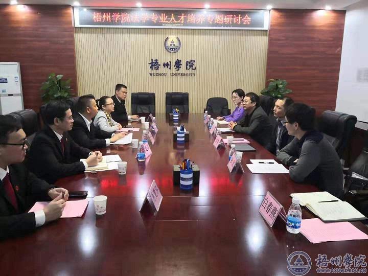 | 11月22日下午,法学与公共管理学院协同梧州市龙圩区人民法院召开了法学人才培养研讨会。