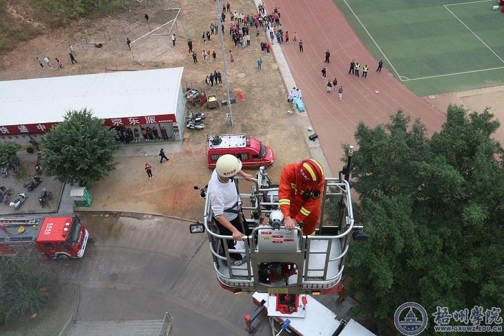11月27日下午,我校在A11学生公寓楼举行2019年高层建筑火灾疏散救援联合演练。
