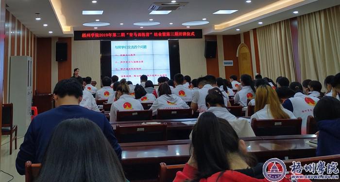 11月26日晚,学校在明理楼七楼视频会议室举行梧州学院2019年第二期“青马训练营”结业暨第三期开班仪式。校党委副书记曹迎出席活动。