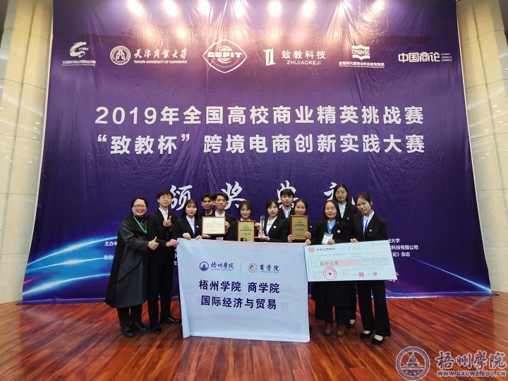 12月8日,2019年全国高校商业精英挑战赛”致教杯”跨境电商创新实践大赛全国精英赛在天津商业大学圆满落下帷幕。由我校2017和2018级国际经济与贸易专业参赛选手组成两支队伍均取得优异成绩。其中“‘灯’峰造极”团队在本次在此次全国精英赛中获得冠军,“‘沙’出重围-Zale”团队获得精英赛优胜奖,此外我校还获得了最佳院校组织奖。