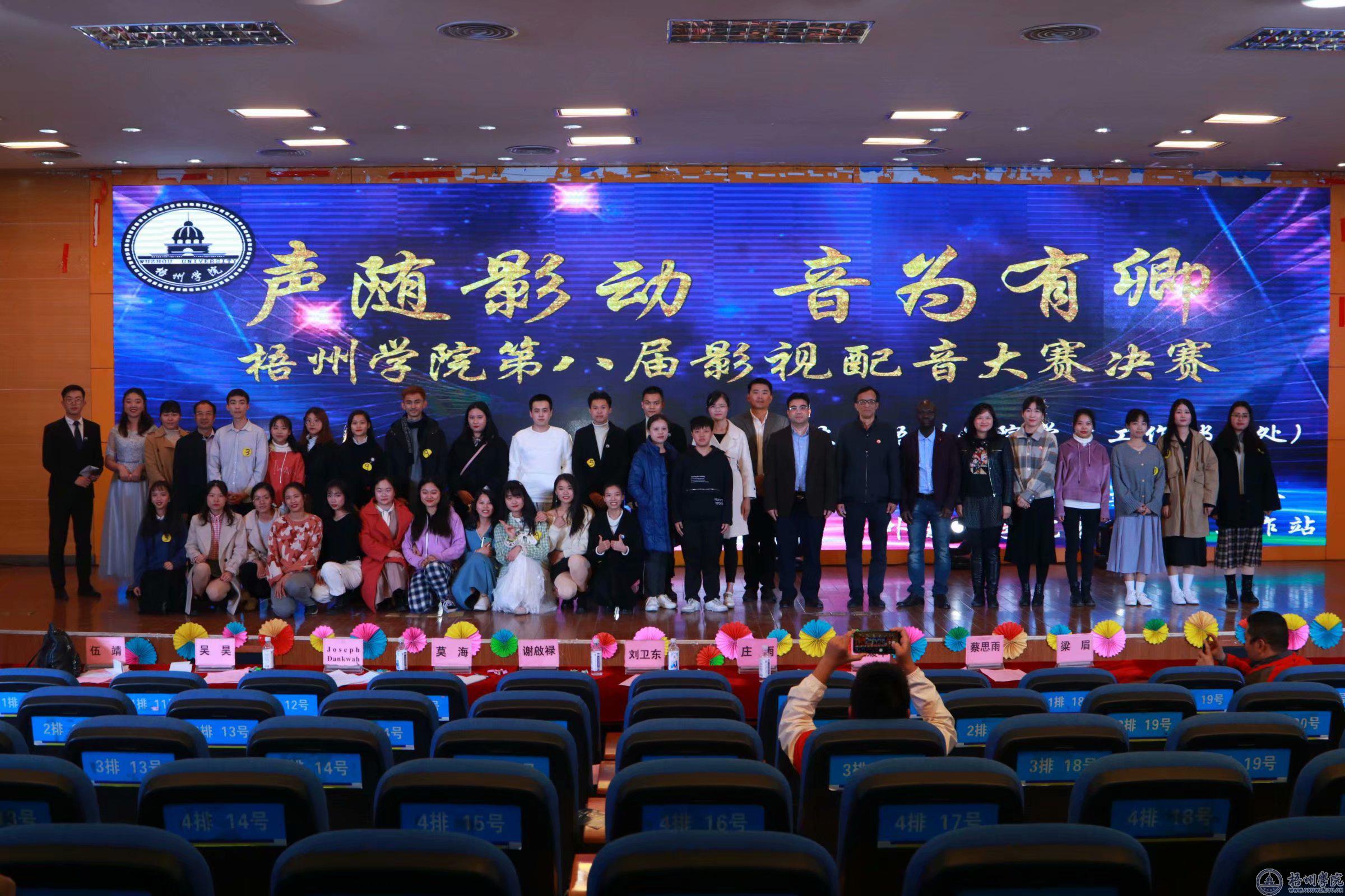 12月7日,学校第八届影视配音大赛决赛在明理楼学术报告厅举行,此次大赛以“声随影动,音为有卿”为主题,共400多名师生观看了比赛。 大赛历时近一个月的初赛和复赛选拔,各学院共10组队伍进入决赛。 此次举办的影视配音大赛,为繁荣校园文化,激发广大同学的英语学习兴趣和提高英语口语水平,检验语言教学成果及培养大学生的创新及团队合作能力提供一个展现独特创意和精彩表现力的舞台。 [文图:覃小蝶]
