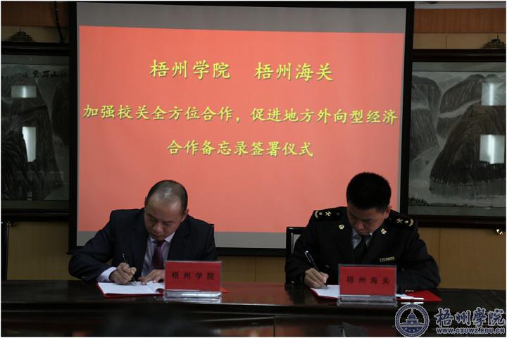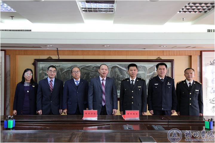 12月10日下午,梧州学院副校长甘金明带队拜访梧州海关,双方进行了融洽与有效的深度座谈,在此基础上,梧州学院与梧州海关签订了关于加强校关全方位合作、促进地方外向型经济发展合作备忘录框架协议,梧州学院教务处处长时伟,商学院院长杨西春、副院长赵虹,梧州海关关长王希龙,缉私局局长农伟东,副关长郭弢以及双方各部门主要负责人员出席了本次座谈会与协议签订仪式。