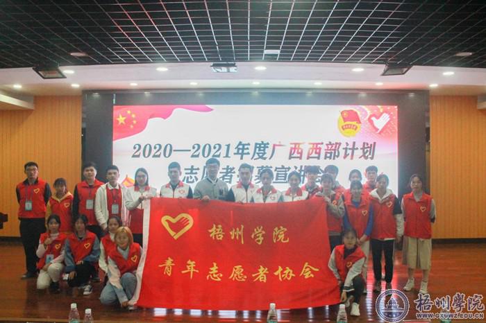 11月28日下午,我校在大学生发展中心路演大厅举办了以“辉煌七十载,志愿青春行”为主题的2020-2021年度广西西部计划志愿者招募宣讲会(梧州学院专场)活动。